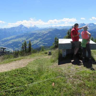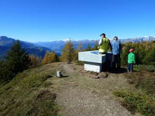 Eine wetterfeste, ästhetisch schöne und übersichtliche Panoramaplatte ist in einen zwei Tonnen schweren Granitblock aus Andeer eingelassen und informiert über viele Dörfer und Berge in der Gegend. Bei guten Sichtverhältnissen ist gar das Finsteraarhorn im Berner Oberland zu sehen, 4273 Meter hoch und in 106 Kilometer Entfernung. Die prächtige Panoramatafel befindet sich unmittelbar bei der Bergstation der Sesselbahn.