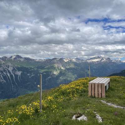 Sitzbank bei der Alp digl Oberst mit herrlichem Blick über das Schams.