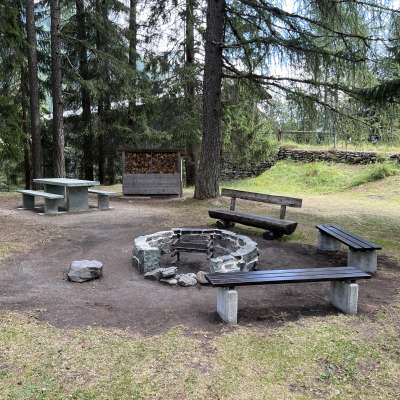 - 3 Bänke um die Feuerstelle (je 3-4 Sitzplätze)