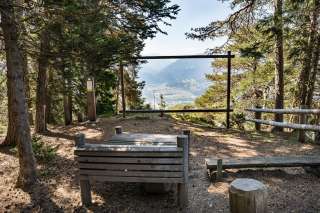 Die Feuerstelle befindet sich unterhalb von Feldis beim Aussichtspunkt «Thusisblick». Die Aussicht auf Thusis und den Piz Beverin sowie Rhäzüns und den Flimserstein ist atemberaubend.