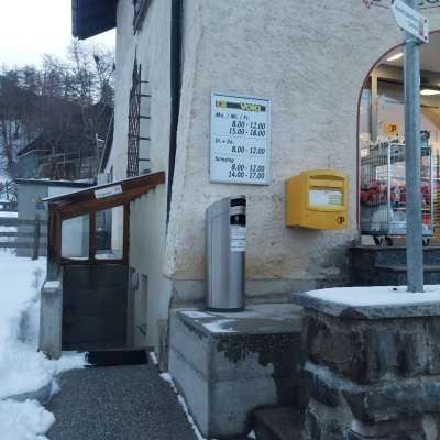 Die Toilette befindet sich im Nebengebäude vom Volg Feldis.