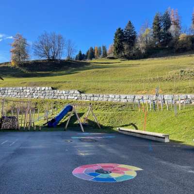 Der Spielplatz beim Schulhaus Sarn bietet vielfältige Spielmöglichkeiten und einen grossen Platz um sich auszutoben. Die Rutschbahn, das Kletternetz, das Kletteriglu, zahlreiche Bodenspiele und weitere Spiele, lassen es nicht langweilig werden.