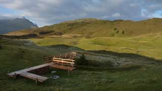 Die Feuerstelle befindet sich direkt beim Steg des wieder aufgefüllten Lüschersees und auf dem Erlebnisweg - ein Berg im Fluss. Informationen zum Wiedererwachen des Lüschersees finden Sie hier.