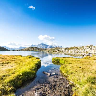 Am oberen Surettasee auf 2272 m liegt die Seehütte, die für eine Übernachtung gebucht werden kann und ein Ruderboot, welches für eine Seerunde gerne benutzt werden darf. Die stille Atmosphäre ist wohltuend und wenn sich dann die umliegenden Bergspitzen vom Seehorn bis zum Surettahorn im See spiegeln, wird der Ausflug zu einem unvergesslichen Erlebnis.